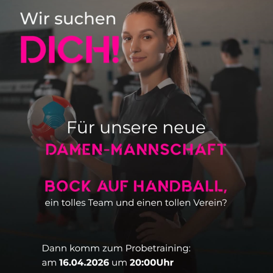 Wir möchten mit einer neuen Damen-Mannschaft wieder durchstarten. Wenn Du also Lust auf Handball, ein tolles Team und einen Verein mit starker Gemeinschaft hast, dann komm zu unserem Probetraining: Am 16.4., 20 Uhr, im Sportzentrum Eppertshausen (Nieder-Röder-Str. 99).